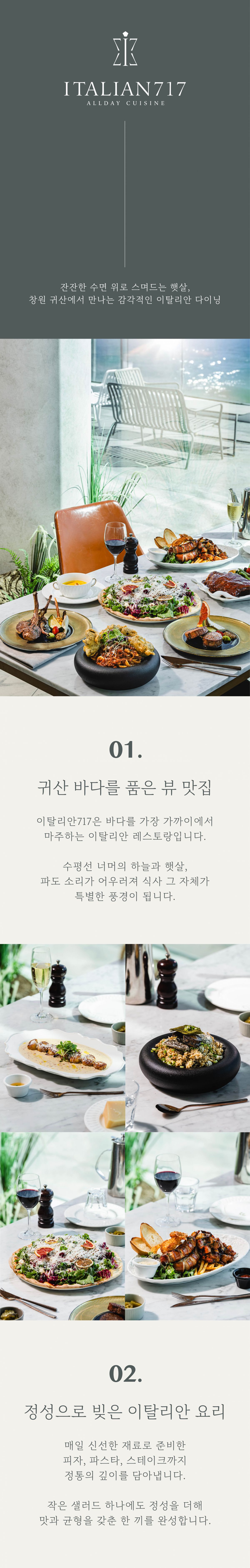 바다와 가장 가까운 다이닝, 이탈리안717이 함께합니다.